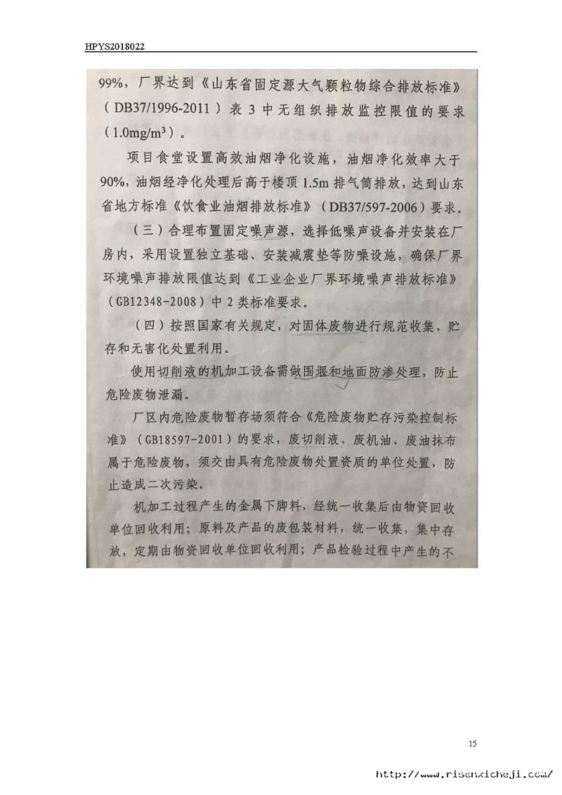青島日森機電有限公司洗車機生產項目竣工環境保護驗收意見