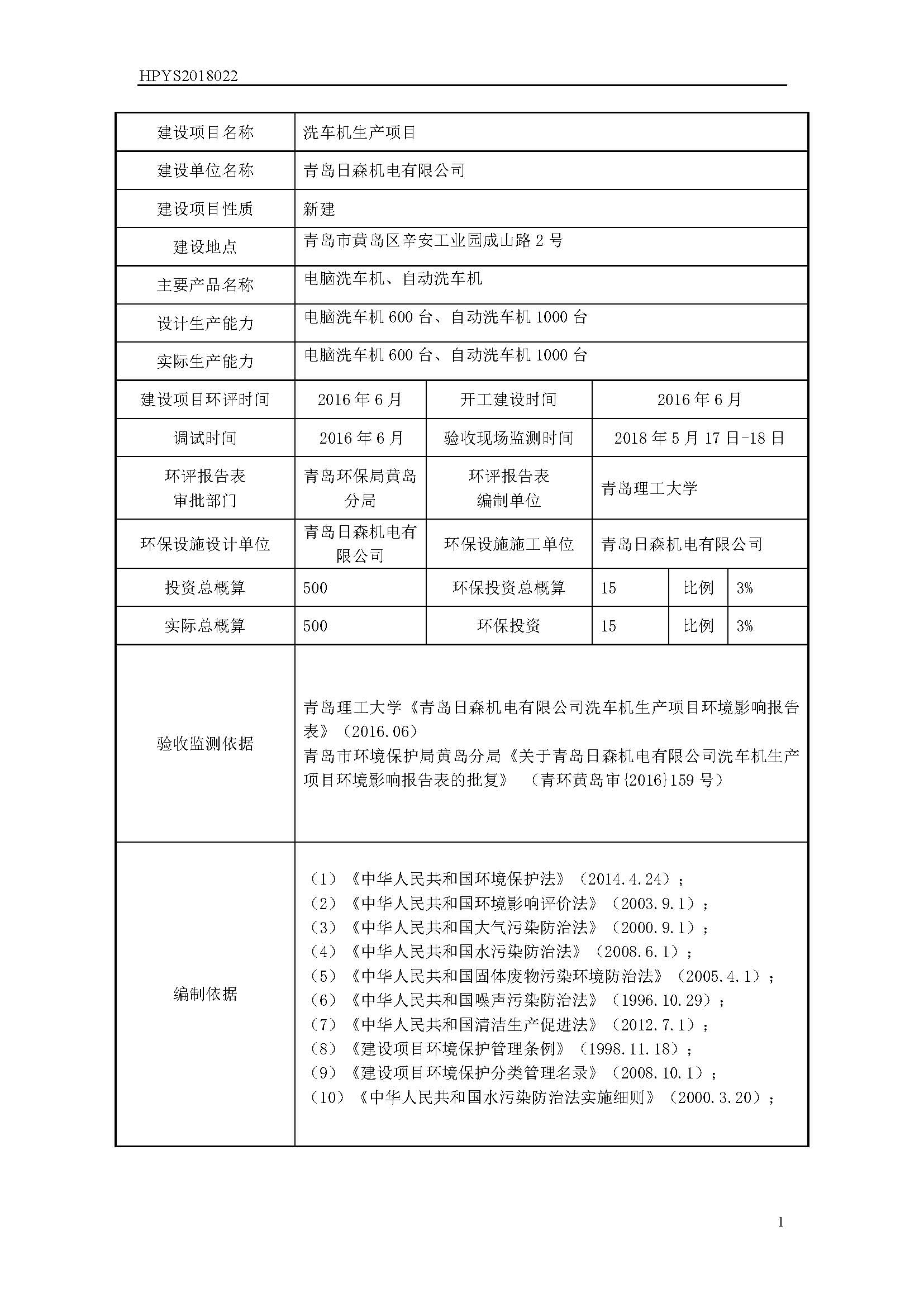 根據(jù)《國務(wù)院關(guān)于修改〈建設(shè)項目竣工環(huán)境保護管理條例〉的決定》(國務(wù)院令第682號),以及環(huán)保部《關(guān)于發(fā)布《建設(shè)項目竣工環(huán)境保護驗收技術(shù)指南 污染影響類》的公告》(國環(huán)規(guī)環(huán)評[2018]9號),現(xiàn)將青島日森機電有限公司洗車機生產(chǎn)項目環(huán)境保護竣工驗收情況公示如下: